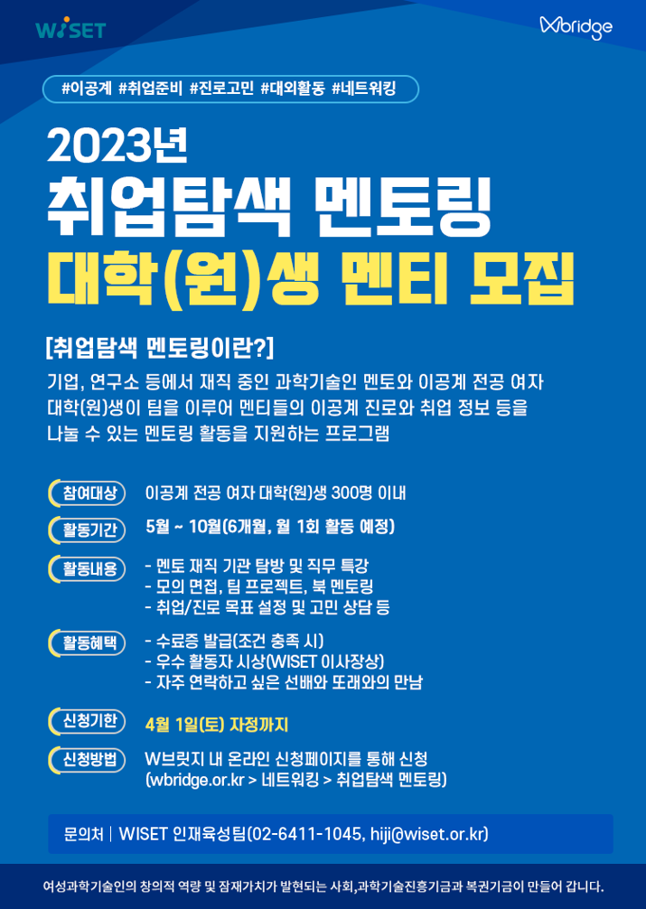 ○ 사 업 명 : 2023년 WISET 취업탐색 멘토링