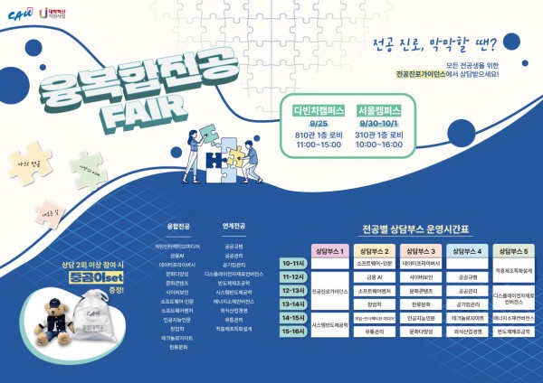 학사팀에서는 융복합전공의 활성화와 학생들의 전공선택권 확대를 위해 “2025 융복합전공 FAIR”를 개최합니다.
