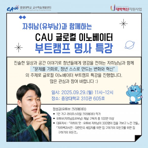 CAU 글로컬 이노베이터 명사 특강에 중앙대학생 여러분을 초대합니다.
