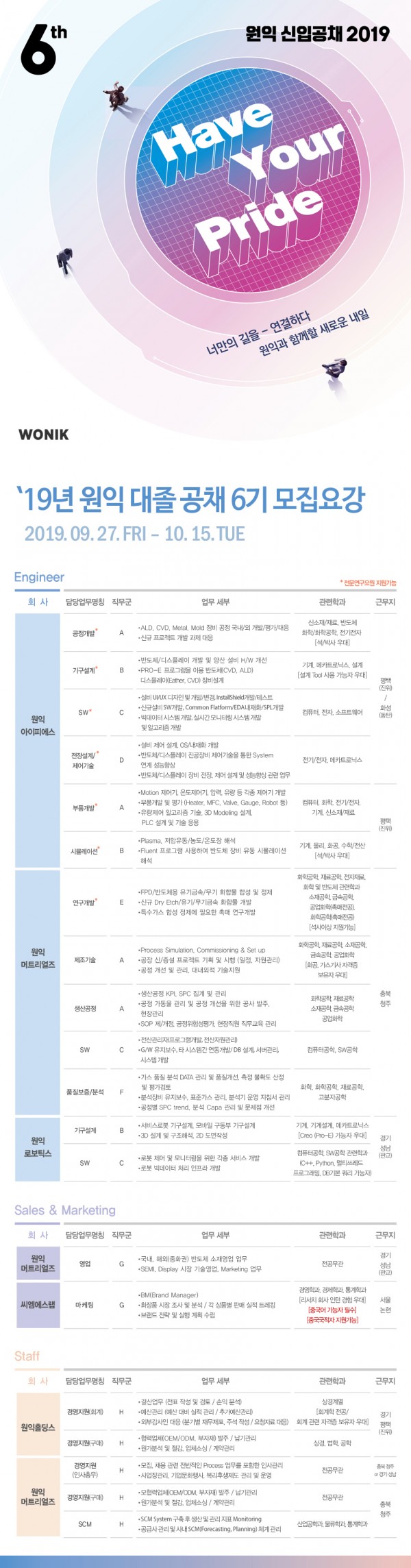 [원익] 2019년 원익 대졸 공채 (~10/15)