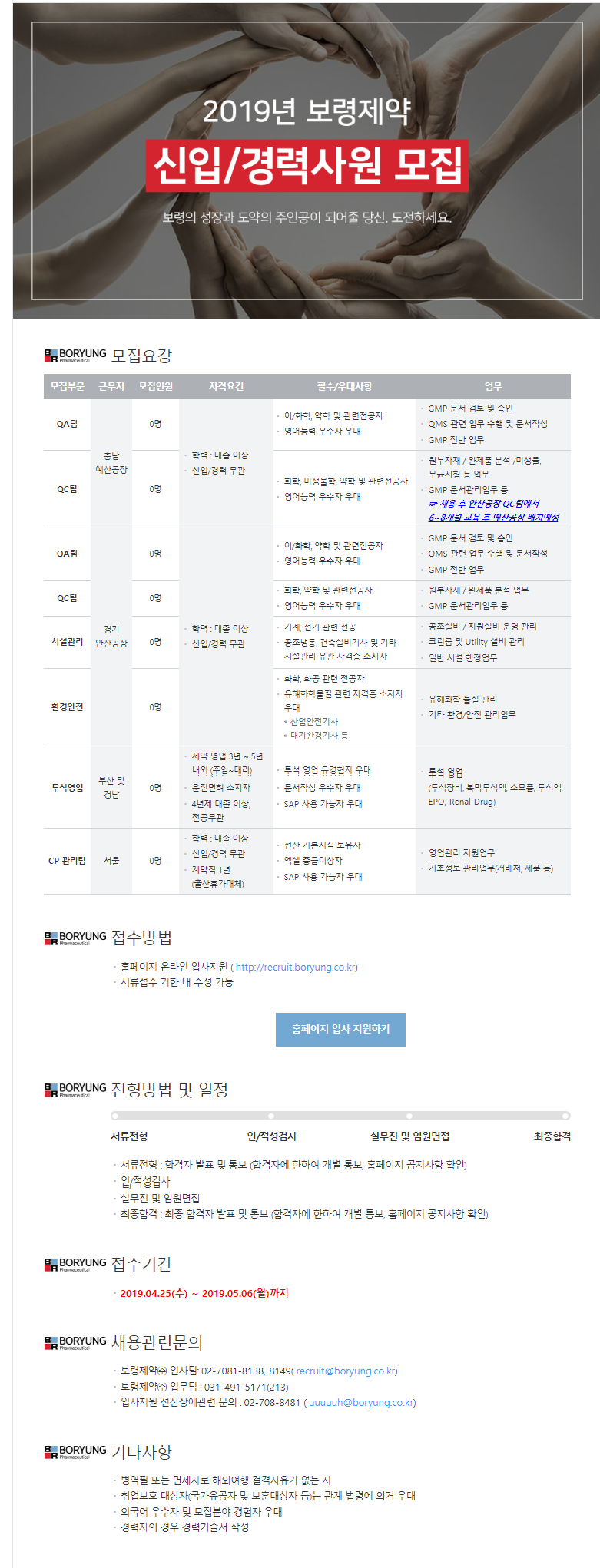 보다 자세한 사항은 당사 채용포털을 참고하시기 바랍니다. (http://recruit.boryung.co.kr/)