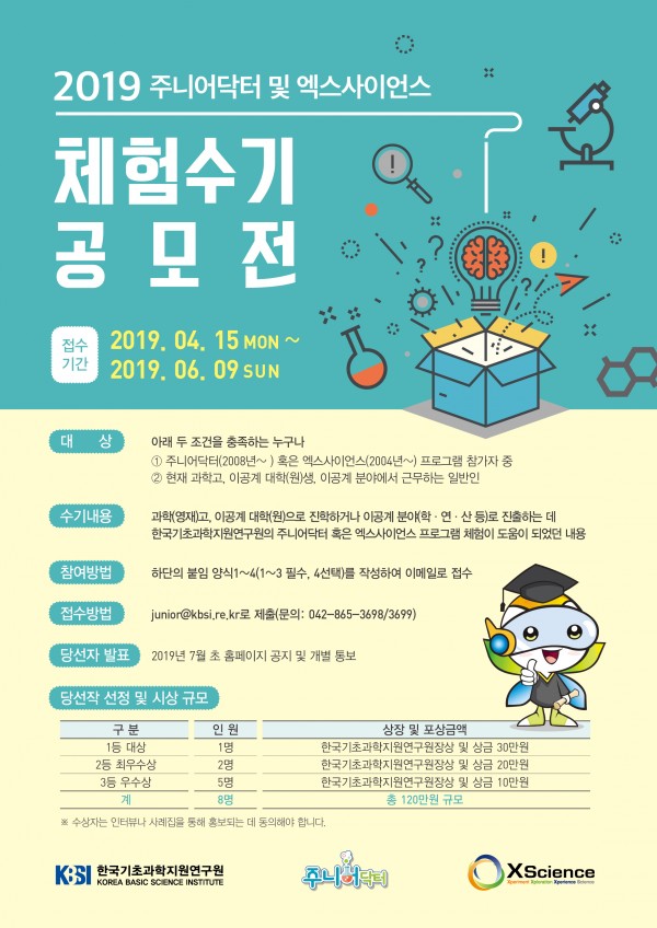 다. 수기내용 : 과학(영재)고, 이공계 대학(원)으로 진학하거나 이공계 분야(학·연·산 등)로 진출하는 데 한국기초과학지원연구원의 주니어닥터 혹은 엑스사이언스 프로그램 체험이 도움이 되었던 내용
