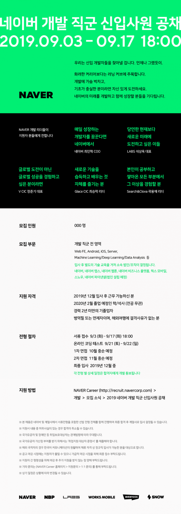 * 상세한 내용은 모집 공고 이미지 또는 네이버 채용홈페이지 참조