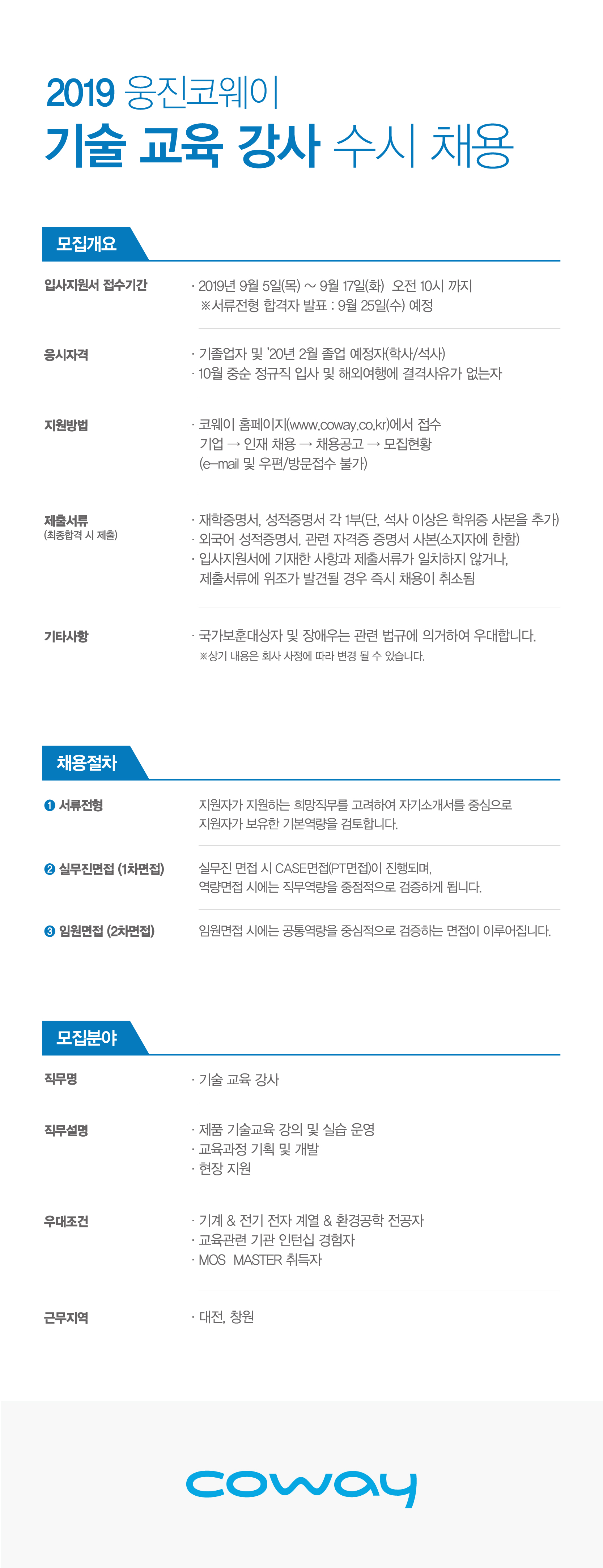 코웨이 홈페이지(www.coway.co.kr)에서 접수