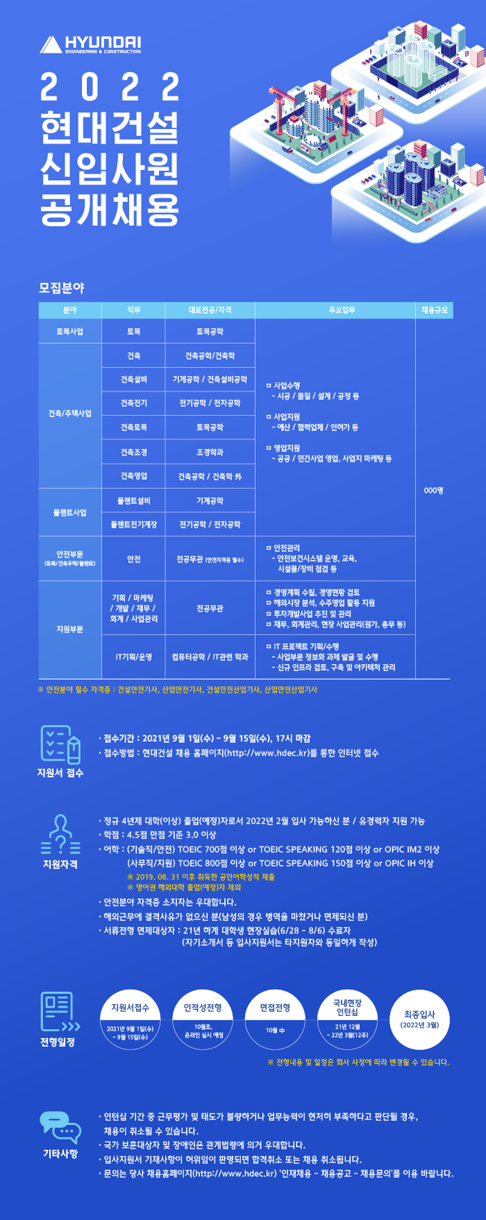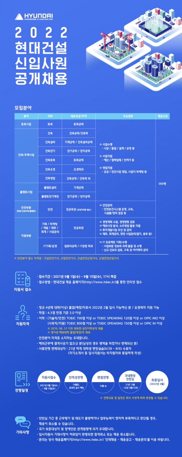 ・접수방법 : 현대건설 채용 홈페이지(http://www.hdec.kr)를 통한 인터넷 접수