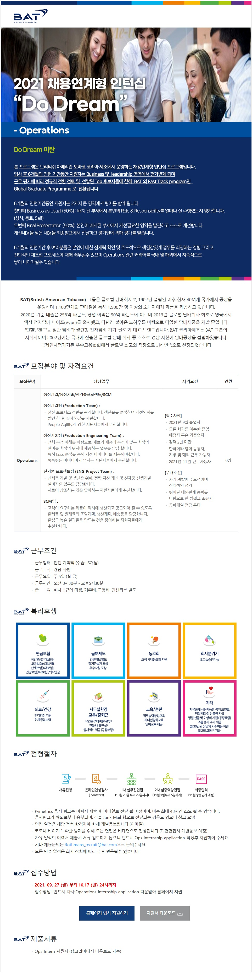 [BAT코리아] 2021 BAT Ops 채용연계형 인턴십 “Do Dream” 사원 모집 (~10/17(일))