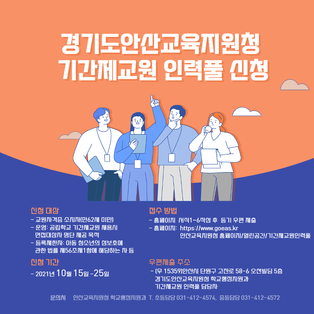 2021년 하반기 경기도안산교육지원청 기간제교원 인력풀 등록 신청 안내 (~10/25(월))