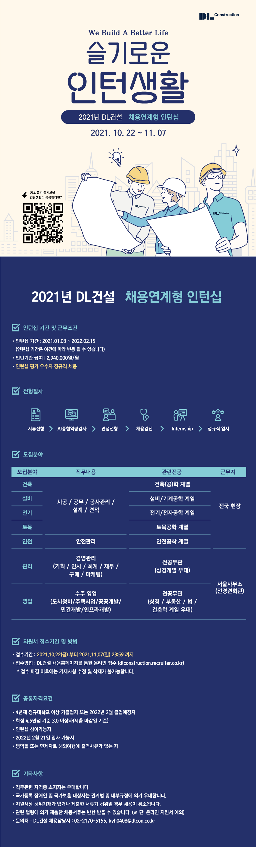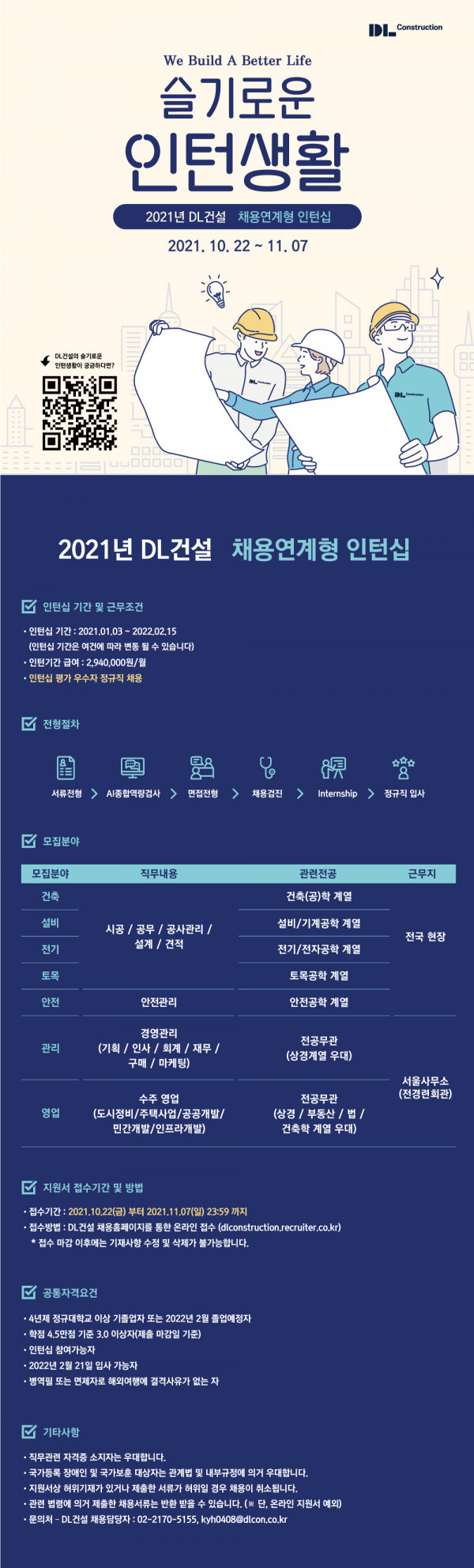 [DL건설] 2021 DL건설 채용연계형 인턴쉽 ( ~ 11/7)
