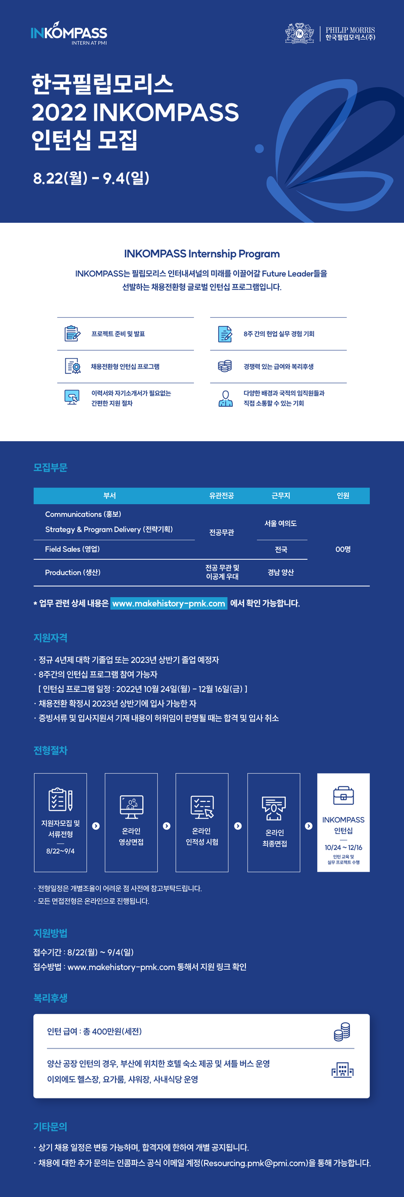 [한국필립모리스] 2022 INKOMPASS 인턴십 모집(~9/4)
