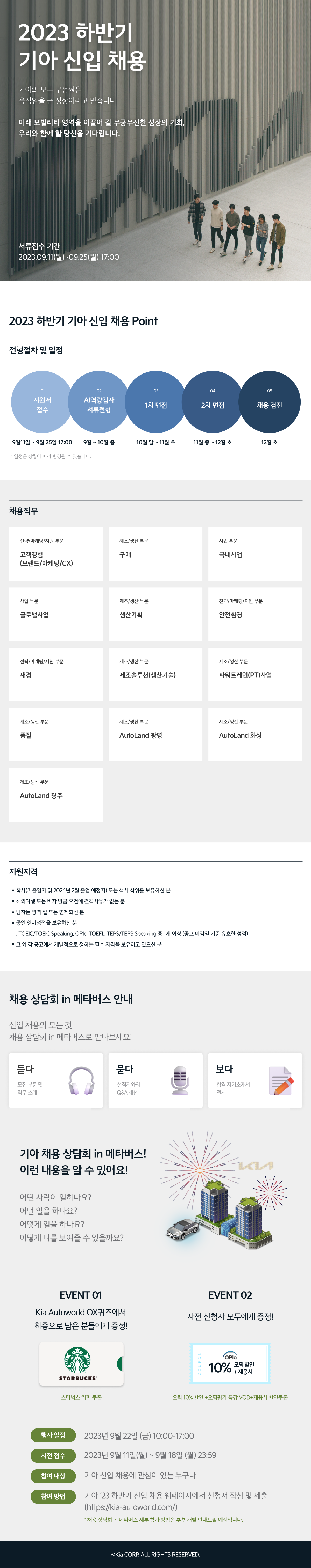 ■ 참여 방법 : 기아 ’23 하반기 신입 채용 웹페이지에서 신청서 작성 및 제출