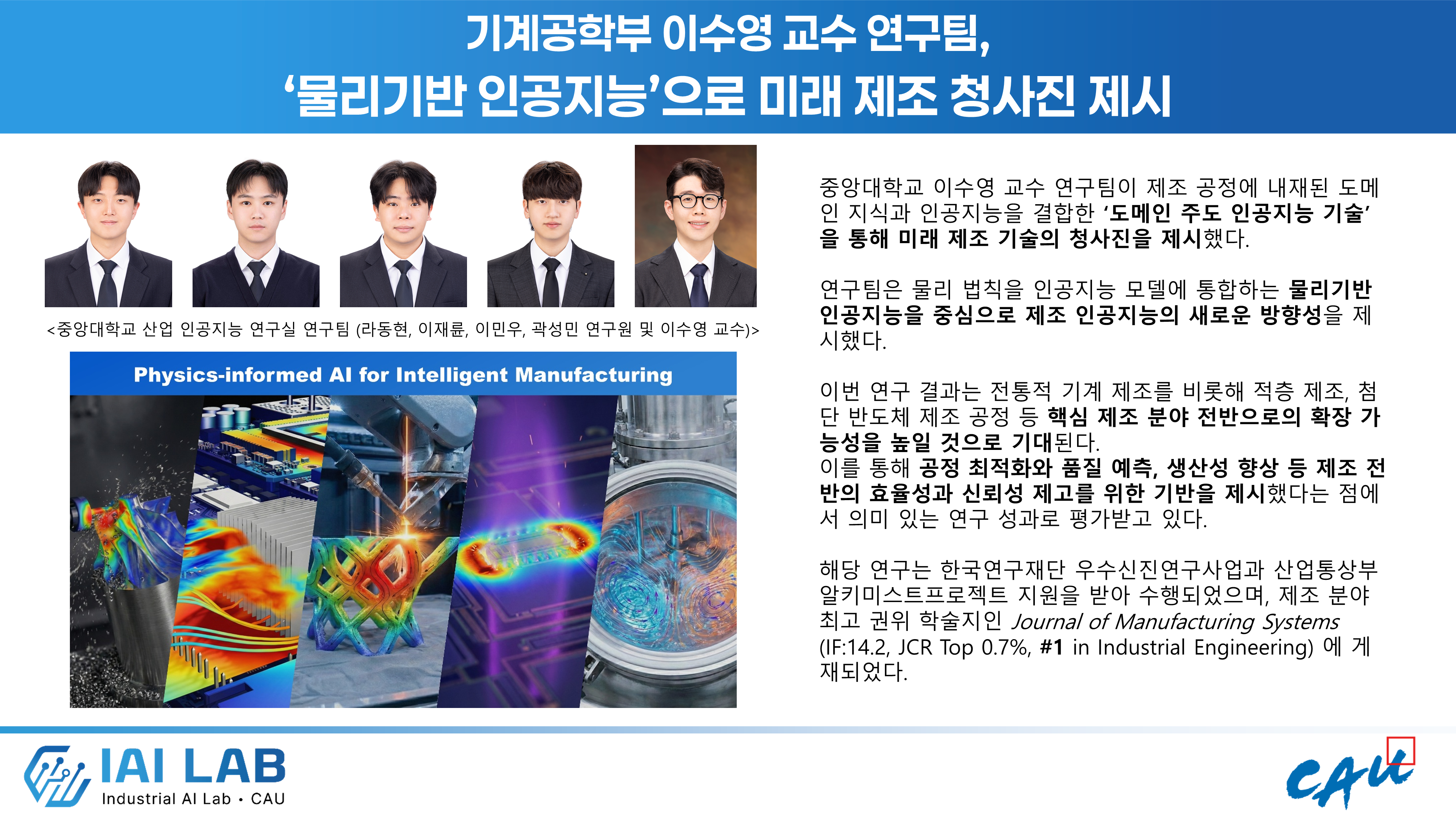 기계공학부 이수영 교수 연구팀, '물리기반 인공지능'을 통한 미래 제조 청사진 제시
